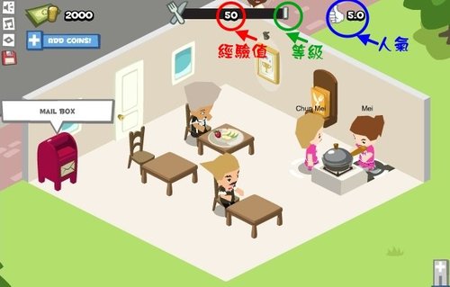 人氣越低 客人就越少 你要升級的速度就會比較慢囉